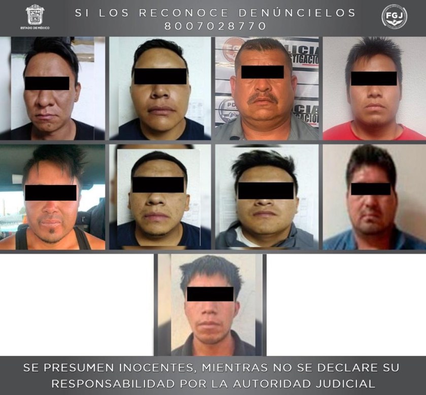 Toluca, Estado de México.- Como parte de las acciones operativas que realiza la Fiscalía General de Justicia del Estado de México (FGJEM) para el esclarecimiento de homicidios dolosos registrados en la entidad, agentes de esta Institución detuvieron a nueve probables partícipes de este ilícito.