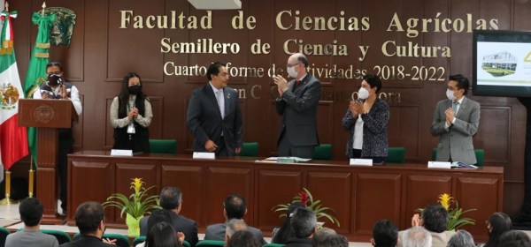 El rector de la UAEMéx, Carlos Eduardo Barrera Díaz, encabezó el cuarto informe anual de actividades del director de la Facultad de Ciencias Agrícolas, Omar