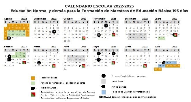 - Calendario de 195 días para Educación Normal y para la formación de docentes de Educación Básica-