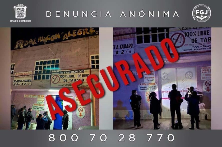El pasado 30 de junio elementos de la Fiscalía Especializada de Trata de Personas realizaron cateo en el establecimiento con razón social Bar Rincón Alegre, en Ixtlahuaca, donde se logró el rescate de tres posibles víctimas del sexo femenino, todas mayores de edad.