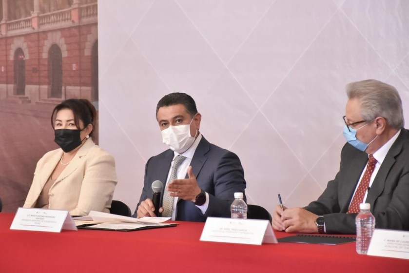 A la firma del convenio encabezada por Rodríguez Hurtado y Ángel Prado, acudieron también la Presidenta Honoraria del DIF Municipal, María Gómez Martínez; el Secretario del Ayuntamiento, Edmundo Ranero, además de María de Lourdes Montiel, Perla Monroy y Alberto Contreras, titulares del Sistema Integral, de Desarrollo Social y de la Juventud, respectivamente.