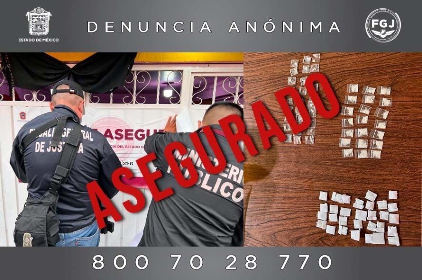 Tras ser otorgado el mandamiento judicial, agentes de la Fiscalía Regional de Cuautitlán y Peritos de la Coordinación General de Servicios Periciales se trasladaron al sitio en donde ubicaron y aseguraron 38 bolsas y un paquete comprimido con hierba verde con las características de la marihuana.