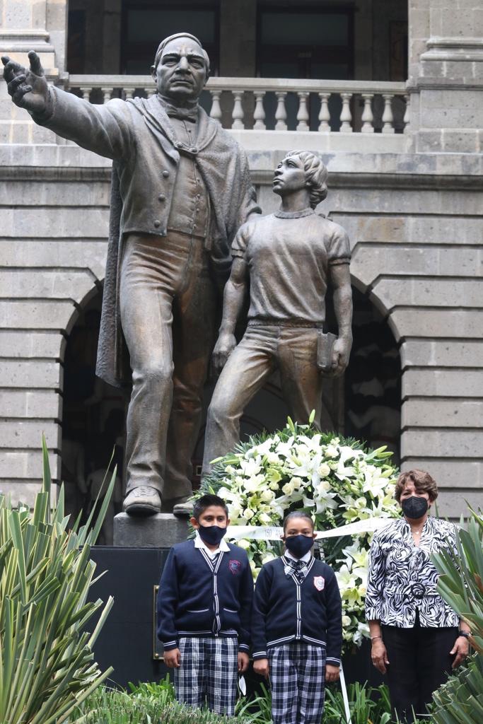 Ante alumnos de la Escuela Primaria “Benito Juárez García”, resaltó que gracias al expresidente se estableció la educación primaria obligatoria y gratuita, y se instruyó la primaria y secundaria para mujeres. Con Juárez, abundó, se abrió un número relevante de escuelas primarias en México.