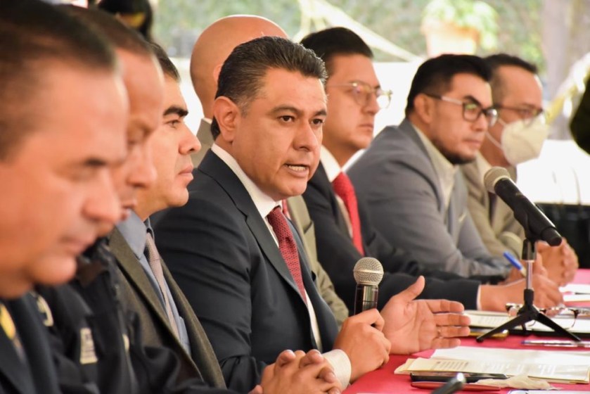 Mario Alfredo López, comisario de Seguridad Ciudadana de Cuautitlán; Alan Pierre Camacho Osnaya, director de Seguridad Pública y Protección Ciudadana de Nicolás Romero, en representación del munícipe Armando Navarrete; Cristian Luján, representante de la alcaldesa de Azcapotzalco, Margarita Saldaña, y el comisario Eduardo Picos Gallegos, coordinador de la Policía Estatal.