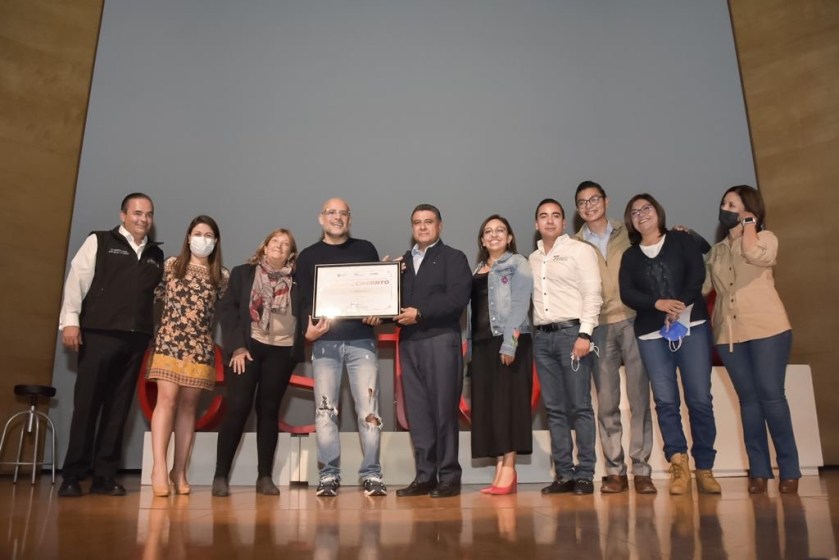 Al entregar un reconocimiento a Odin Dupeyron, el Presidente Municipal, acompañado de la Directora de la FES Iztacala, María del Coro Arizmendi, y de integrantes del Cuerpo Edilicio, agradeció el aporte del también productor hacia la juventud de Tlalnepantla y haberse sumado a esta semana conmemorativa.