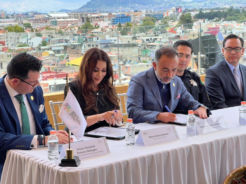 En el marco de la firma de convenio entre el Ayuntamiento de Metepec y la Codhem, a través de los titulares, el alcalde Fernando Flores Fernández y la presidenta Myrna Araceli García Morón, la ombudsperson destacó que una de las partes fundamentales del derecho humano es la buena administración pública, algo que, aquí, dijo, ya viven en el ejercicio de la actual gestión del Ayuntamiento.