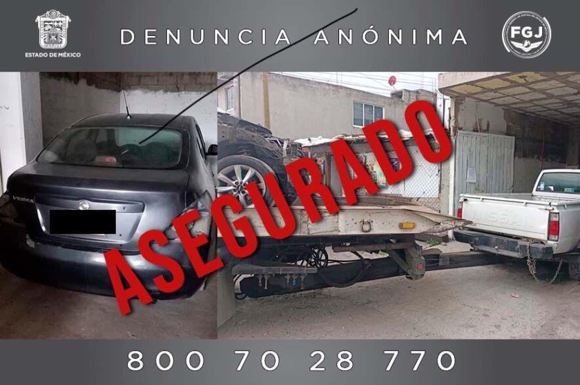 Una vez que el Juez de Control concedió dicho mandato judicial, los elementos de la FGJEM se constituyeron al lugar donde llevaron a cabo la inspección, logrando la localización de dos unidades de la marca Nissan, tipo Versa y Pick-Up, las cuales cuentan con reporte de robo vigente.