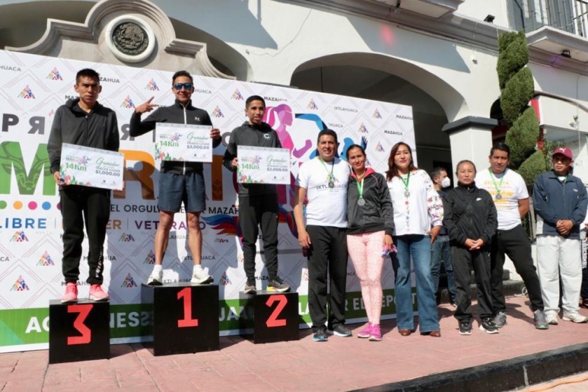 Ixtlahuaca, México; 17 de octubre de 2022. El presidente municipal, Abuzeid Lozano Castañeda, premió las cinco categorías del Primer Medio Maratón por el Orgullo de Ser Mazahua, que convocó a cerca de mil corredores en el municipio, tanto en las ramas femenil como varonil.