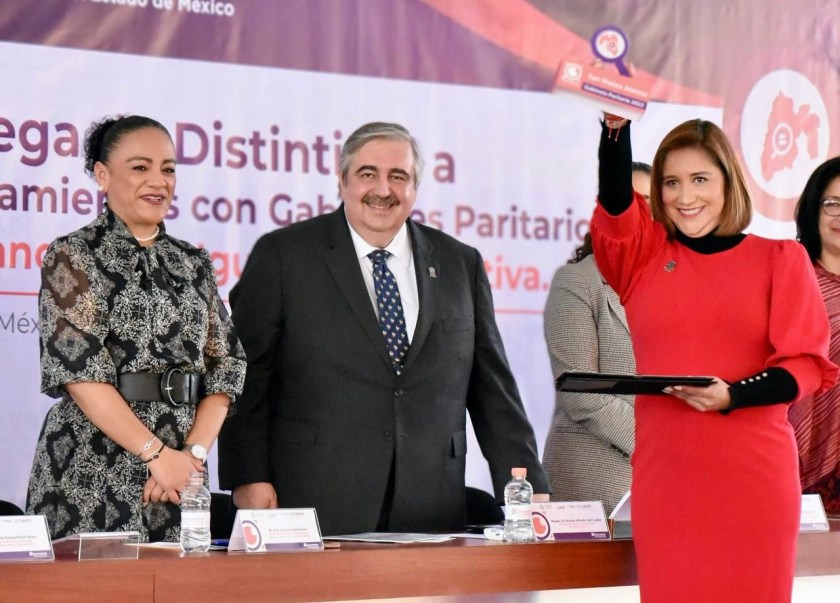 Con el propósito de reducir las vulnerabilidades políticas a las que se enfrentan las mujeres mexiquenses, en un esquema de paridad como un principio, a través del cual se construye una nueva relación entre géneros y un nuevo concepto de democracia, el Observatorio de Participación Ciudadana de las Mujeres en el Estado de México (OPPMEM) hizo entrega de distintivos a 15 Gabinetes Municipales, que cumplen con el Principio de Paridad en su integración.
