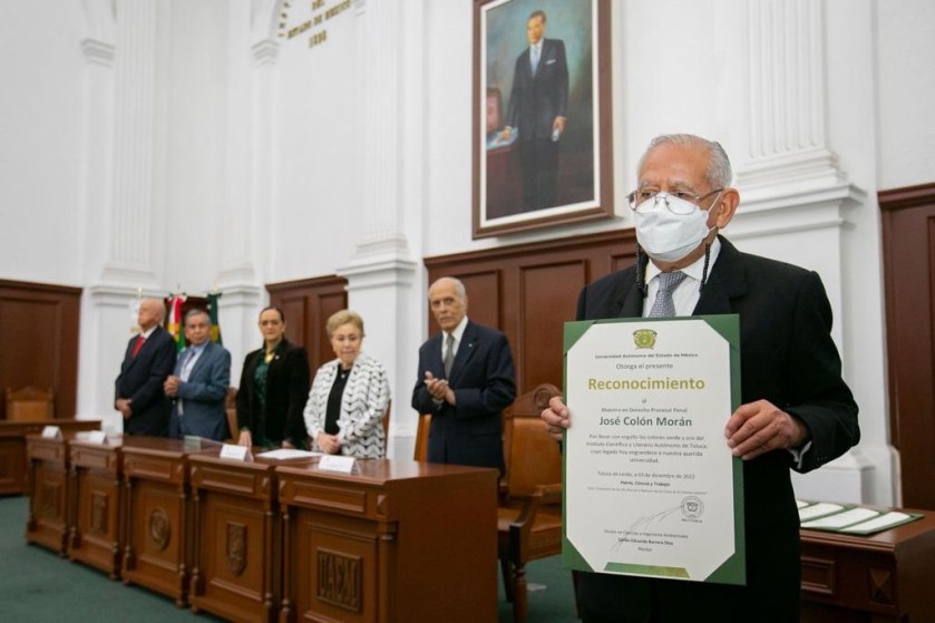 “Hoy rendimos homenaje a aquellas personas que al ejercer sus profesiones con probidad y con vocación social, mostraron el camino correcto a quienes estudiamos o trabajamos en la Universidad Autónoma del Estado de México, una noble institución que nos nutrió tanto de conocimientos especializados como de los instrumentos intelectuales para analizar y transformar la realidad en el ámbito de nuestras competencias profesionales.” abundó.