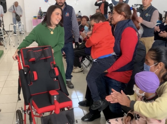 A través del Sistema DIF municipal, presidido por Irai Albarrán Segura, se entregaron 23 sillas de ruedas, 6 andaderas, 15 bastones y pañales desechables, los cuales fueron adquiridos con la colaboración de la iniciativa privada y el DIF estatal.