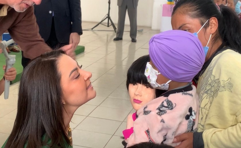 La presidenta honoraria también hizo entrega de tres pelucas oncológicas para personas que padecen cáncer (dos de adulto y una de niña), elaboradas artesanalmente por el voluntariado del DIF Metepec, que coordina Kenya Asmara Quintero Cortés.