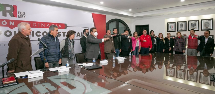 El pleno del Consejo Político Estatal del PRI aprobó los acuerdos correspondientes por el que se selecciona procedimiento para la postulación de la candidatura al gobierno del Estado de México para el período constitucional 2023-2029; además el tope de gastos de precampaña y la creación de Comisiones Especiales encargadas de la elaboración de los proyectos de convenios de coalición electoral o candidatura común y otra dedicada a establecer la plataforma electoral.