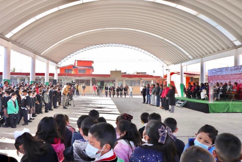 El presidente municipal de Lerma, Miguel Ángel Ramírez Ponce, entregó las obras de arcotecho y módulos sanitarios, de la primaria «Adolfo López Mateos» de la colonia Agrícola Analco.