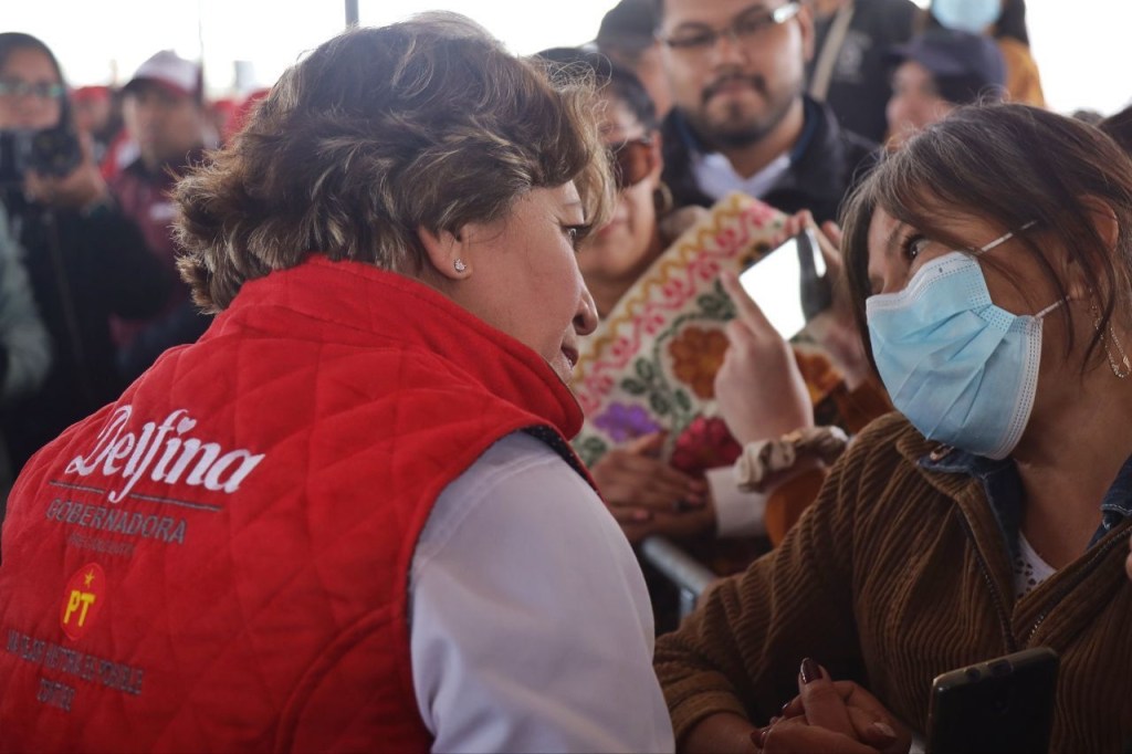 En la Plaza Cívica “Benito Juárez”, ante 5 mil simpatizantes, Delfina Gómez convocó a militantes y simpatizantes al cierre de precampaña que se llevará a cabo este domingo 12 de febrero, a las 11:00 am en la sede de la Feria Internacional del Caballo, en Texcoco, municipio del que es originaria.
