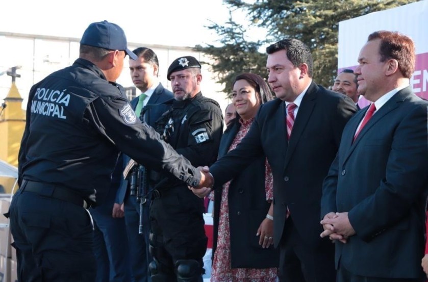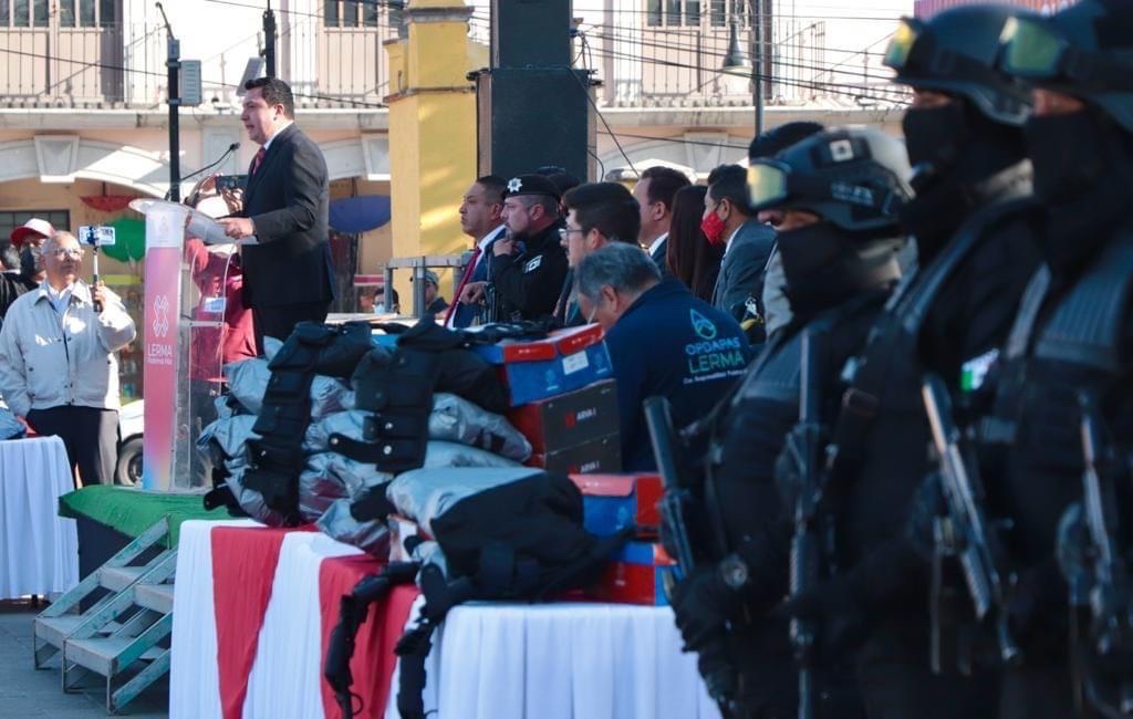 De manera simbólica, oficiales pertenecientes a las diferentes áreas que comprenden la Dirección de Seguridad Pública y la Dirección de Tránsito y Vialidad de Lerma recibieron de mano de las autoridades: