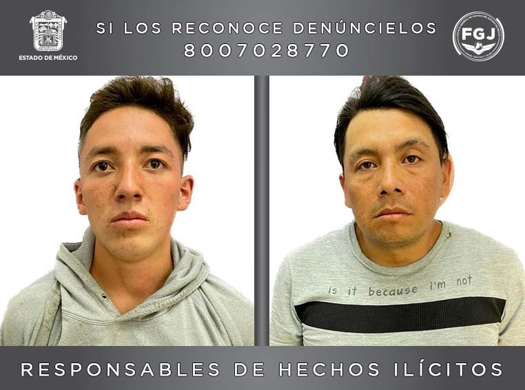 Ecatepec, Estado de México, 27 febrero 2023.- La Fiscalía General de Justicia del Estado de México (FGJEM) obtuvo sentencia condenatoria de 43 años y 9 mes de prisión para César Hernández Rincón y Ángel Alexis Aguilar Quezada, luego de que esta Fiscalía General de Justicia (FGJEM) acreditó su participación en el delito de extorsión.