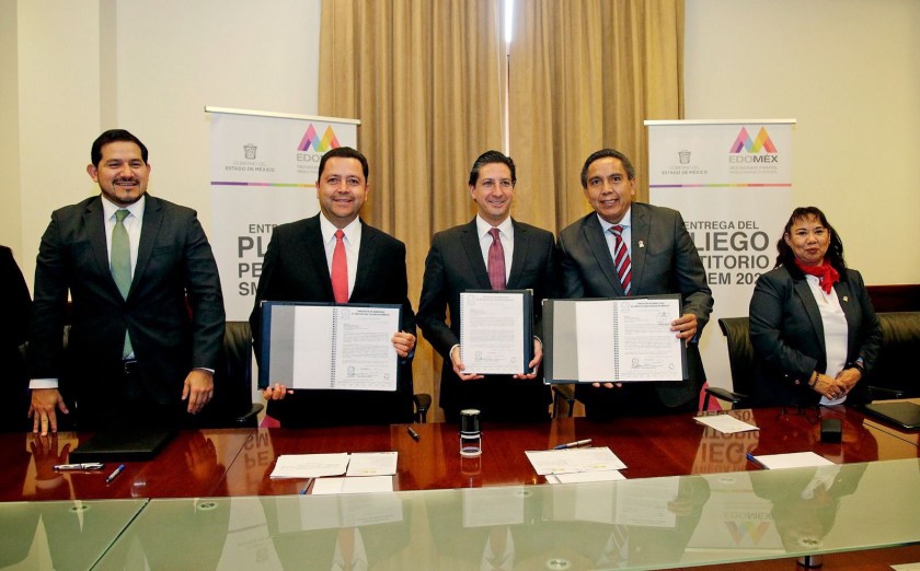- Indican que, en representación del Gobernador Alfredo Del Mazo Maza, recibieron el documento los Secretarios de Finanzas y de Educación, Rodrigo Jarque Lira y Gerardo Monroy Serrano, respectivamente.
