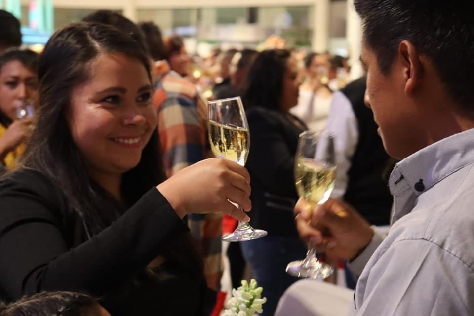 Las novias recibieron un ramo de flores, un grupo musical amenizó el evento, se rifaron viajes a Acapulco y el punto culminante se dio con el brindis protagonizado por todas las nuevas parejas de esposos. Por supuesto, también hubo partida de pastel.