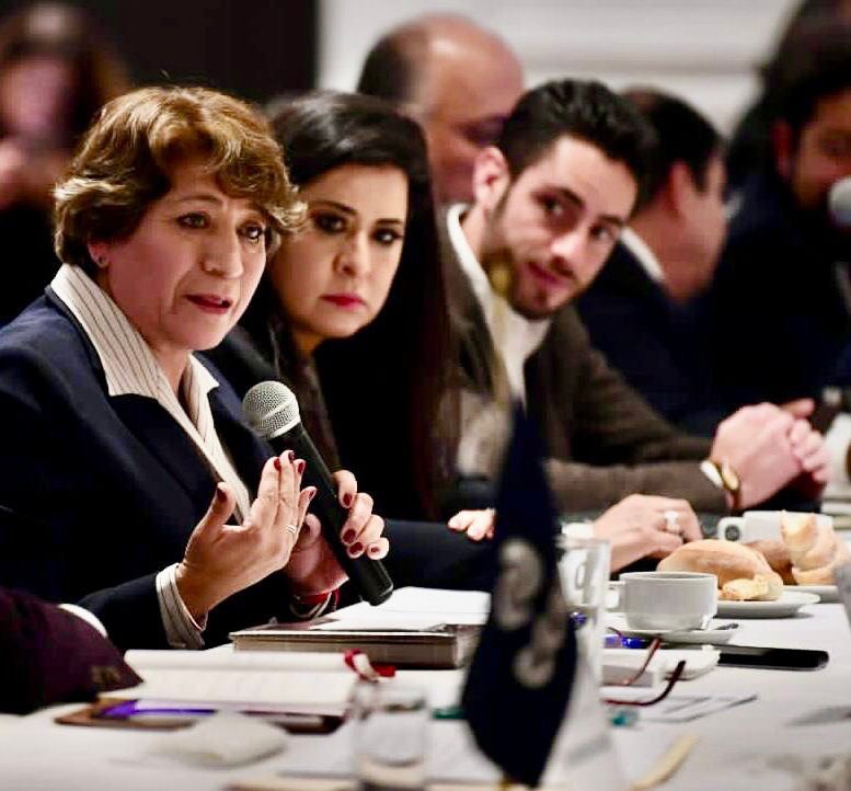 TOLUCA, Estado de México.- Delfina Gómez se reunió de manera privada con empresarias y empresarios integrantes del Consejo Coordinador Empresarial Estado de México (CCEM), líderes sindicales y dirigentes de diferentes sectores productivos, para entablar un diálogo sobre el diagnóstico económico en la entidad, que en 2021 aportó 2.2 billones de pesos de Producto Interno Bruto al país, según el INEGI.