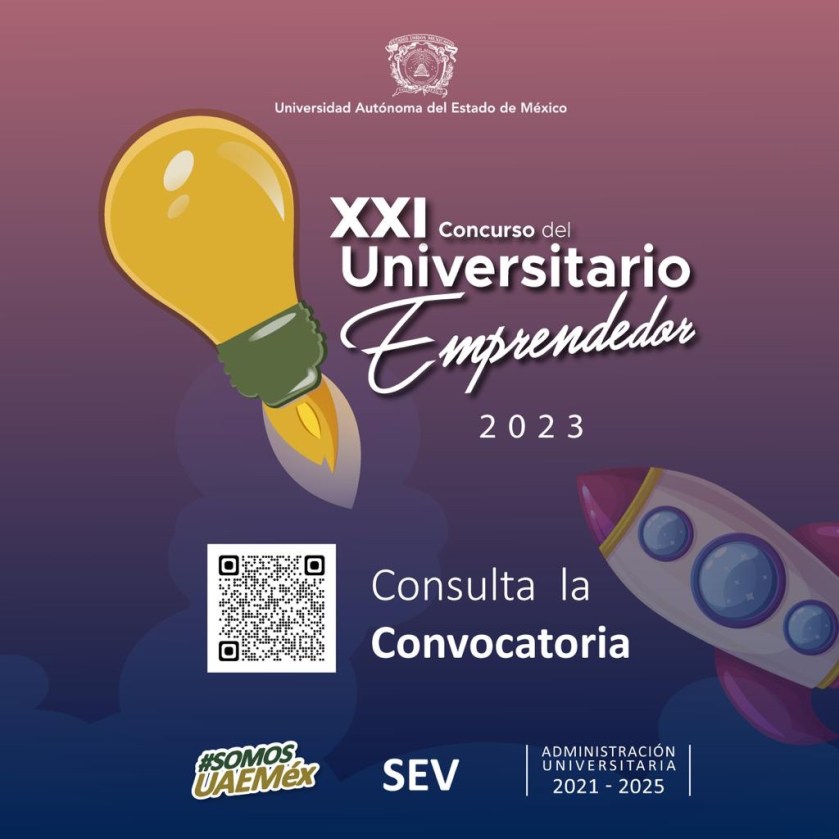 Toluca, Estado de México, 16 marzo 2023.- Con el propósito de impulsar el potencial emprendedor y el desarrollo de modelos de negocios que puedan representar una oportunidad en el desempeño profesional de las y los universitarios, la Universidad Autónoma del Estado de México (UAEMéx) convoca a sus estudiantes de nivel medio superior, licenciatura o egresados –con máximo un año de haber concluido su programa de estudios- a participar en el XXI Concurso del Universitario Emprendedor.