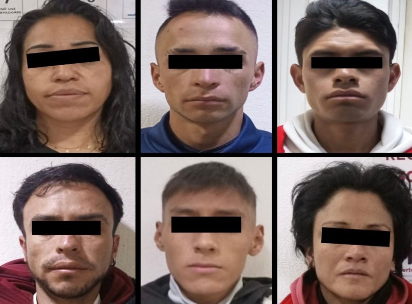 Al acudir al punto referido en el reporte, los uniformados detectaron a los aparentes objetivos, quienes al percatarse de la presencia policial emprendieron huida, por lo que inició una persecución pie a tierra. Tras la movilización, fue posible la aprehensión de Alejandro “N” de 19 años, José “N” de 23 años, Javier “N” de 26, Osvaldo “N” de 30, Mónica “N” de 34 años y Andrea “N” de 37.