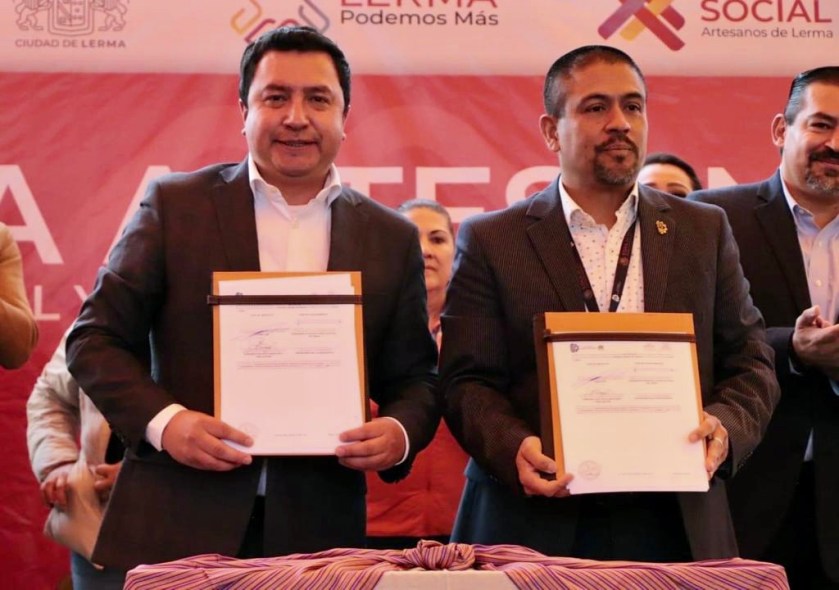 El alcalde Miguel Ángel Ramírez Ponce y Hugo Ernesto Cuéllar Carrera, director del Instituto Tecnológico de Toluca, suscribieron el Convenio Artesanal y Alianza Social y Solidaria del Valle de Toluca, con el objetivo de capacitar y apoyar a los artesanos y emprendedores del municipio.