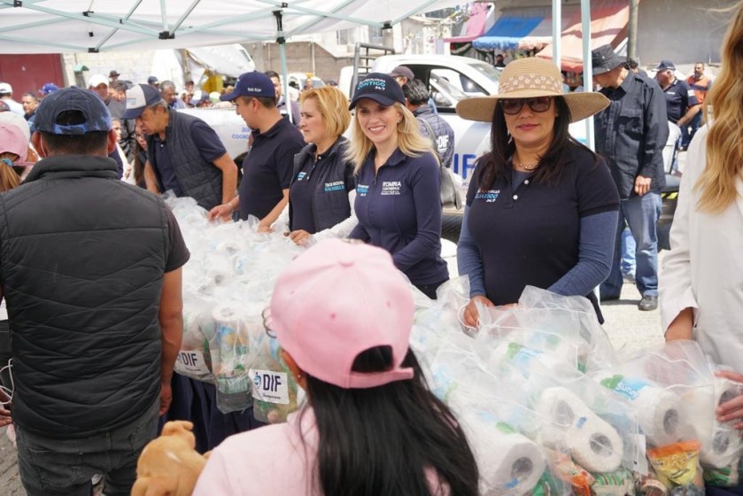 · La presidenta municipal, Romina Contreras, entregó apoyos alimenticios a las comunidades de El Hielo, El Guarda y La Glorieta durante el programa Huixquilucan Contigo 24/7