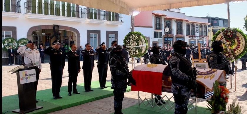 Sus deudos, con lágrimas en los ojos, escuchan las salvas en su honor. El dolor de su partida es palpable en familiares, autoridades, policías y en todos los presentes. Un moño negro a la entrada del edificio edilicio confirma el doloroso luto que vive Metepec y sus habitantes.