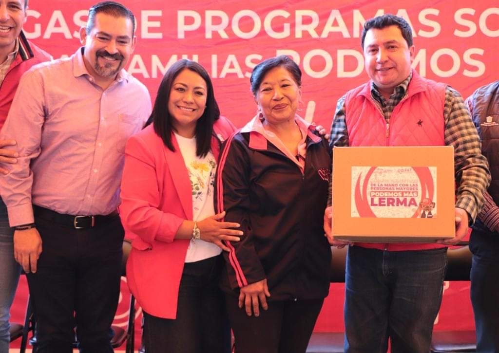 El alcalde Miguel Ángel Ramírez Ponce y la presidenta del DIF municipal, Marisol Mote Martínez, encabezaron las entregas de apoyos del programa social «Por las familias podemos más» a beneficiarios de las regiones Lerma, Tultepec, Atarasquillo y San Miguel Ameyalco.
