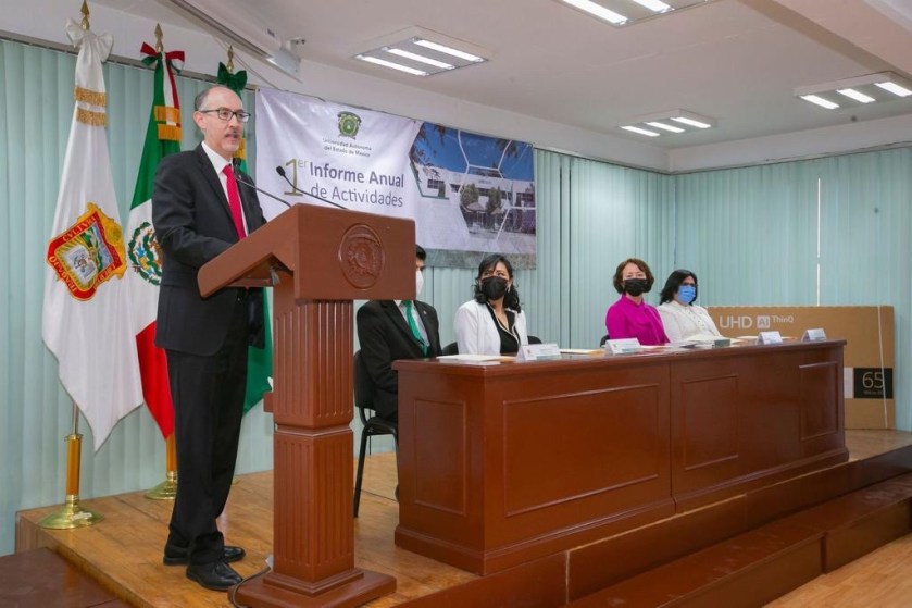 • El rector de la UAEMéx encabezó el Primer Informe Anual de Actividades que rindió la directora de la Facultad de Humanidades, Beatriz Adriana González Durán.