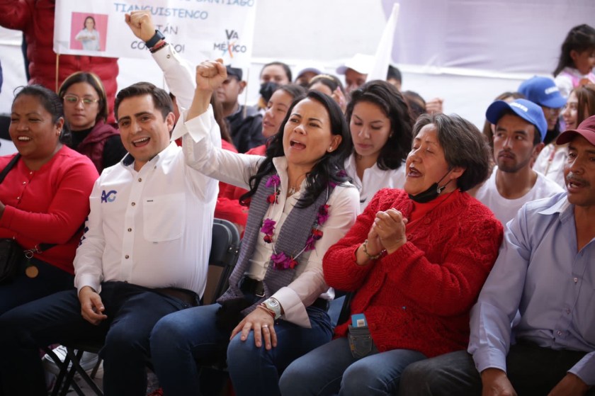 Calimaya, Estado de México.- Alejandra Del Moral estableció un compromiso serio, formal y de frente a las y los calimayenses: “trabajar de la mano con el ayuntamiento local en la red hidráulica y en seguridad, para mejorar las condiciones de vida de la ciudadanía”; por su parte, Calimaya, en voz de Alexis Garay, le expresó: “aquí está, amiga candidata, el ejército de mujeres y hombres valientes que creen en ti, que confían en ti y que va a apoyarte para ganar la elección el próximo 4 de junio”.