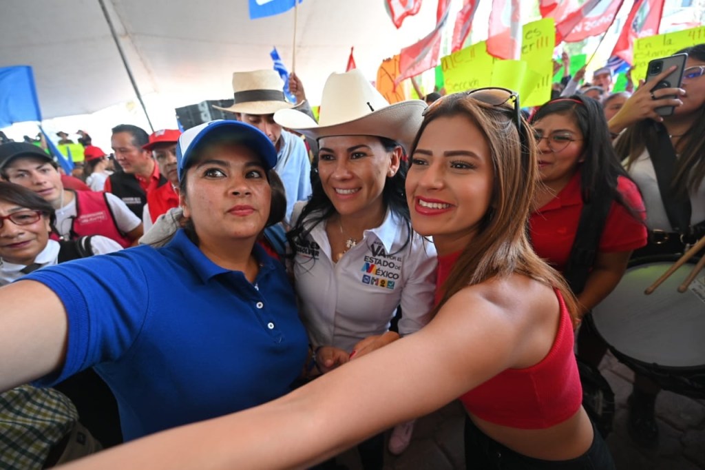 «Es muy claro que lo que requiere el Estado de México, es unión, porque este estado lo hemos construido entre todas y todos», dijo la abanderada al arribar al templete donde la ovacionaron cientos de militantes, simpatizantes y vecinos de la zona.