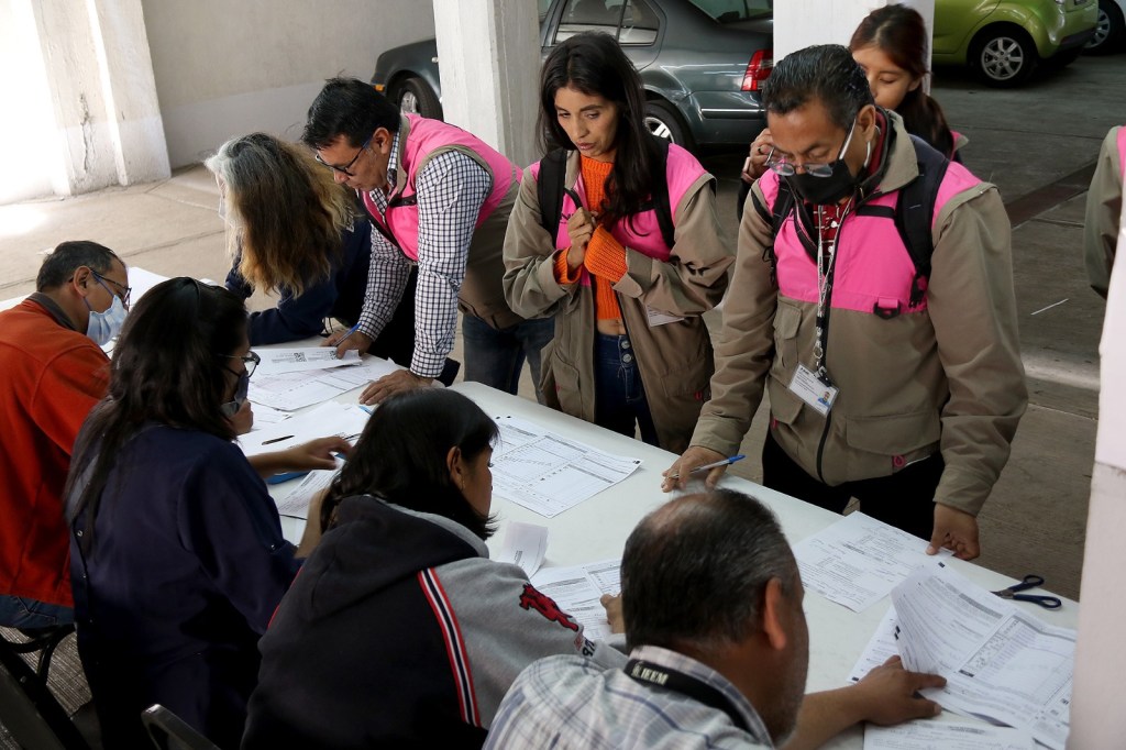 La Consejera Electoral y Presidenta de la Comisión de Organización del IEEM, Sandra López Bringas y el Director de Organización, Víctor Hugo Cíntora Vilchis encabezaron el primero de los tres simulacros que se realizarán previos a la Jornada Electoral, donde participan los 45 Consejos Distritales, las y los Capacitadores Asistente Electoral (CAE) y las y los Supervisores Electorales (SE) del Instituto Nacional Electoral (INE).