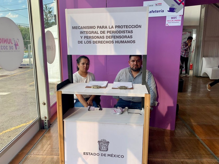 La Coordinación Ejecutiva para la Protección Integral de Periodistas y Personas Defensoras de Derechos Humanos instaló un módulo del Mecanismo de Protección, en la sala de prensa del Instituto Electoral del Estado de México (IEEM), para atender personalmente quejas o denuncias de reporteras, reporteros y personas defensoras de DDHH, durante la cobertura y el desarrollo del proceso electoral.