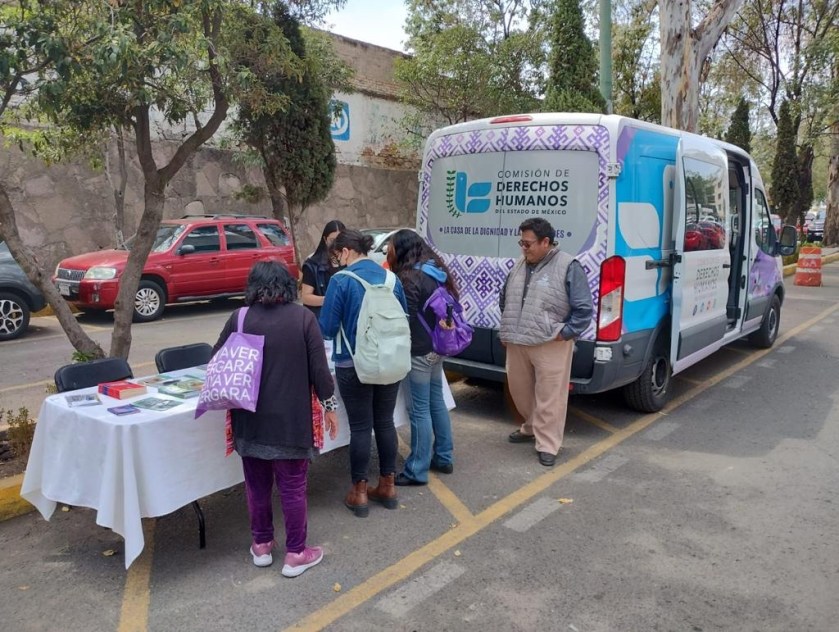 - El personal especializado a bordo de la unidad itinerante acerca los servicios de la CODHEM a la población.