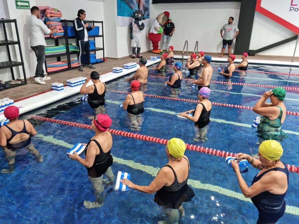 Como parte de la ceremonia de apertura de las clases de natación, los adultos mayores hicieron una demostración de sus habilidades y capacidades en la disciplina de la natación.