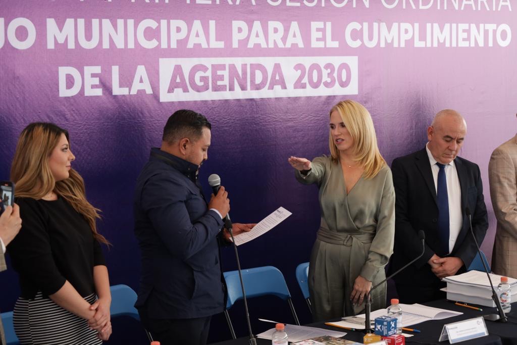 En esta sesión, luego de que Romina Contreras tomó protesta al resto de los integrantes del Consejo Municipal para el cumplimiento de la Agenda 2030 de Huixquilucan, se establecieron grupos de trabajo, en los cuales participan servidores públicos, representantes del sector privado, de la sociedad civil, de la academia y de organizaciones internacionales, así como especialistas; dichas mesas quedaron divididas en distintos temas centrales como Carencias sociales, Crecimiento económico, Seguridad e Instituciones Sólidas, Industria, Infraestructura, Ciudades Sostenibles, así como Agua y Medio Ambiente.
