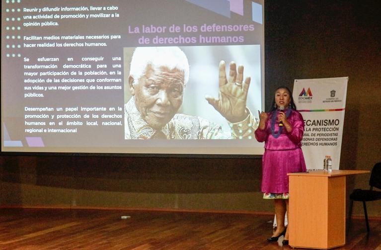 - Imparte Carolina Santos, Coordinadora General de la Red de Mujeres Indígenas del Estado de México, capacitación sobre la defensa de los Derechos Humanos desde el servicio público.