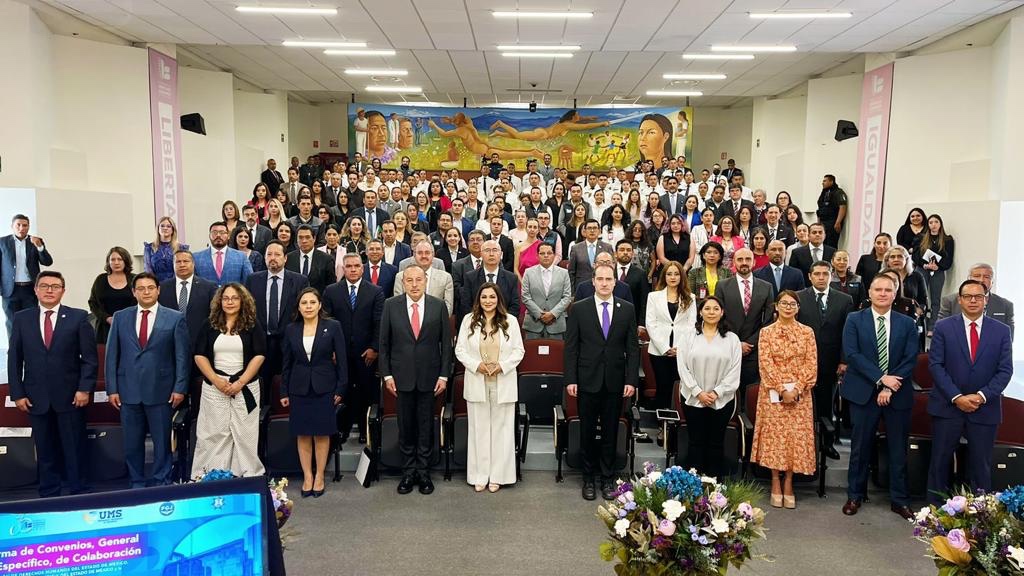 Toluca, Estado de México, 6 de julio de 2023.- La Comisión de Derechos Humanos del Estado de México (CODHEM), la Fiscalía de Justicia de la entidad (FGJEM), la Secretaría de Seguridad estatal (SSEM) y la Universidad Mexiquense de Seguridad (UMS), a través de sus titulares, Myrna Araceli García Morón, José Luis Cervantes Martínez, Rodrigo Sigfrid Martínez-Celis Wogau y Griselda Camacho Téllez, respectivamente, signaron Convenios de Colaboración para desarrollar actividades conjuntas, entre ellas, la impartición de un Diplomado para capacitar a personas servidoras públicas contra la tortura.