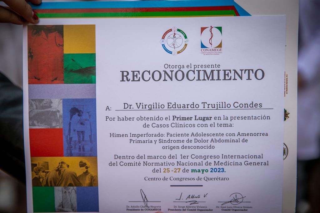 Trujillo Condes y Bringas Ortiz explicaron que el caso que presentaron fue sobre una paciente de 14 años de edad, quien presentaba amenorrea primaria, la cual es la falta de menstruación a esa edad. El diagnóstico fue que la paciente tenía un himen imperforado, es decir, que esta membrana está cerrada de manera anormal, ya que debería de presentar una abertura para permitir el flujo menstrual habitualmente a esta edad, además de presentar un síndrome de dolor abdominal desde hacía tres meses, la cual no había sido diagnosticado de manera correcta, hasta que se hace una inspección en la que se observa precisamente un acúmulo de sangre a través de la clínica y de estudios complementarios como un ultrasonido.