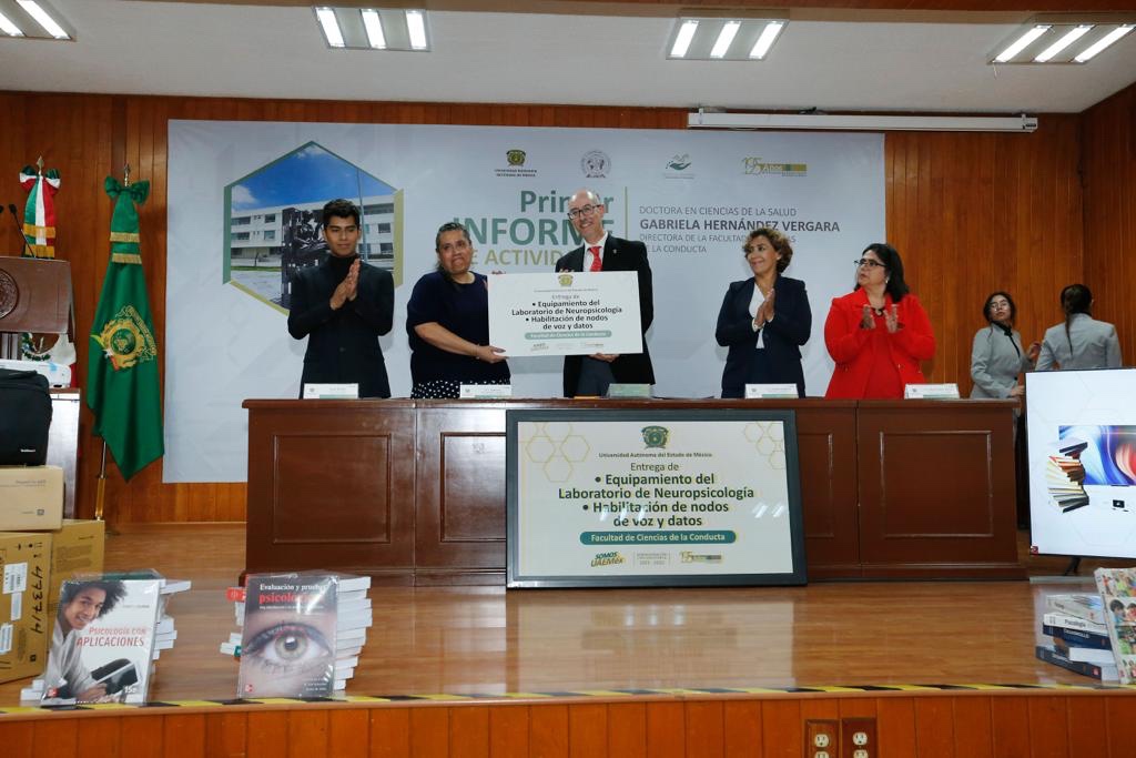 Al encabezar la lectura del primer informe de actividades de la directora de este espacio universitario, Gabriela Hernández Vergara, el rector entregó siete pantallas de 65 pulgadas, 10 proyectores LCD, un acervo importante de libros y pruebas psicológicas, así como equipamiento para el Laboratorio de Neuropsicología con licencias de software, baterías neuropsicológicas, equipo para estimulación temprana y psicomotricidad, equipo para neurodesarrollo y colchonetas plegables.