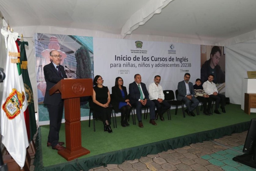 Metepec, Estado de México, 10 agosto 2023.- El inglés es un vehículo fantástico que permite estimular la curiosidad para explorar culturas diferentes, acceder a conocimientos de todos los continentes y comunicarse con personas de todos los rincones del planeta, expresó el rector de la Universidad Autónoma del Estado de México (UAEMéx), Carlos Eduardo Barrera Díaz al inaugurar los Cursos de Inglés para Niñas, Niños y Adolescentes 2023 B.