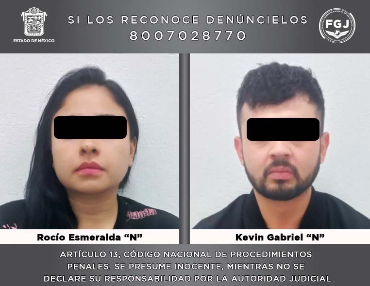 Derivado de diversos actos de investigación, la SSPC, a través de la Comisión Nacional Antihomicidios (CONAHO), en conjunto con la SCC-CDMX y la Fiscalía Edoméx, se logró detener a Rocío Esmeralda “N” y Kevin Gabriel “N”, quienes fueron puestos a disposición del Agente del Ministerio Público en Ecatepec, para posteriormente ser trasladados a la Fiscalía de Asuntos Especiales con sede en el municipio de Toluca.