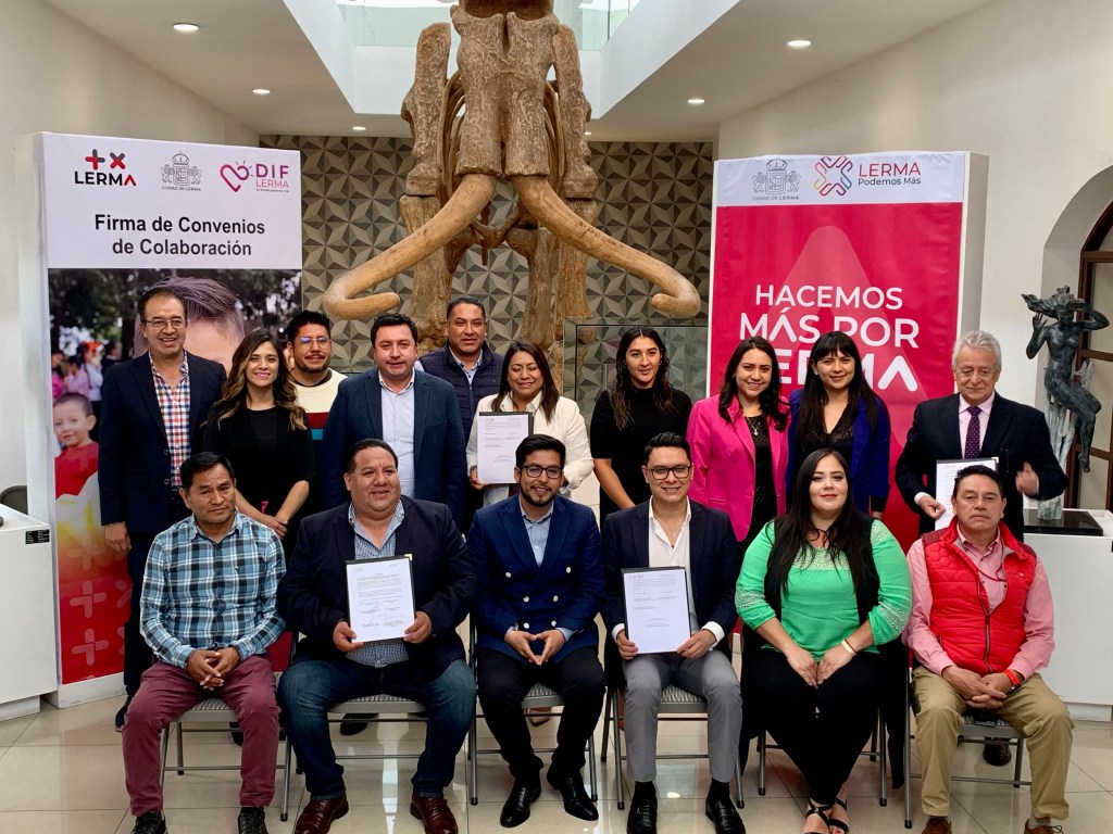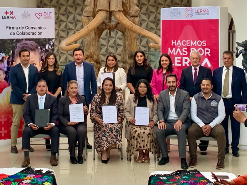 A fin de impulsar más acciones en beneficio de las familias vulnerables de Lerma, el alcalde Miguel Ángel Ramírez Ponce y la presidenta del DIF municipal, Marisol Mote Martínez, firmaron un convenio de colaboración con cuatro instituciones públicas y privadas.