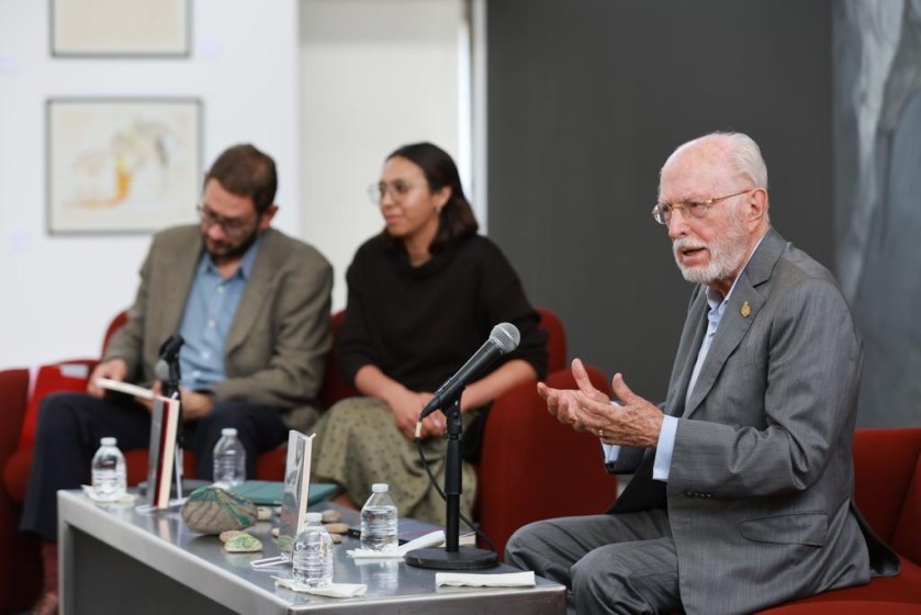 Toluca, Méx; 20 de septiembre de 2023. La Universidad Autónoma del Estado de México (UAEMéx) fue sede de la presentación del libro Textos y texturas. Escritos sobre crítica de arte, del poeta, periodista, ensayista, filósofo y académico mexicano Jaime Mario Labastida Ochoa, el cual ofrece una prosa crítica y reflexiva sobre la obra plástica de grandes maestros mexicanos del siglo XX como Diego Rivera, David Alfaro Siqueiros, Rufino Tamayo, Luis Nishizawa y Francisco Toledo.