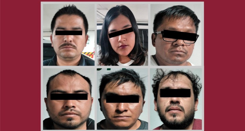 Tras los hechos, los efectivos estatales detuvieron a Joel “N”, de 37 años de edad; María “N”, de 18 años; Diego “N”, de 30 años; Emmanuel “N”, de 29 años; Antonio “N”, de 33 años y José “N”, de 42 años; luego de leer los derechos que la ley les confiere, fueron trasladados junto con los indicios ante la Agencia del Ministerio Público correspondiente para determinar su situación jurídica.