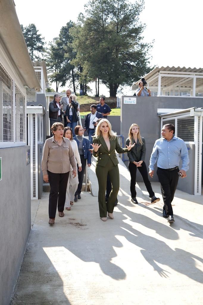 Al cortar el listón inaugural, acompañada del coordinador de los diputados locales del Partido Acción Nacional, Enrique Vargas del Villar; del presidente del Consejo de Administración de Grupo Real, Marcos Salame, y de la alcaldesa de Naucalpan, Angélica Moya Marín, Romina Contreras detalló que, en una primera etapa, el Centro “Huixquican” tiene capacidad para albergar 500 perros, en una superficie de casi 3 mil metros cuadrados, en donde han sido instalados igual número de dormitorios, segmentados en tres zonas. Además, cuenta con un área de recreación, dividida en cuatro patios laterales para que las mascotas jueguen al aire libre y en un espacio seguro, además de amigable con el medio ambiente, al recolectar el agua de lluvia y usar paneles solares, entre otras ecotecnias.