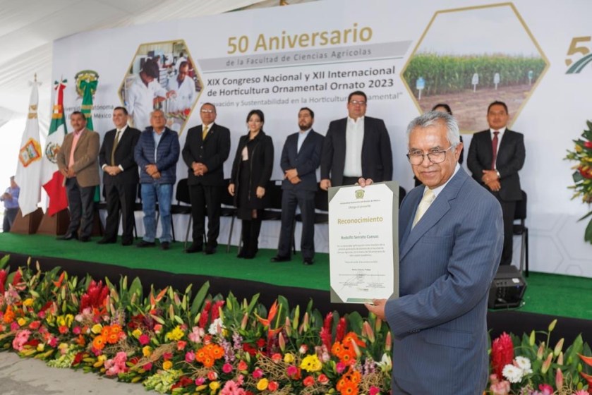 Toluca, Estado de México, 09 octubre 2023.- La comunidad de la Facultad de Ciencias Agrícolas ha puesto siempre en alto los valores universitarios, ya que su amplio campo de actuación permite el uso sustentable de los recursos naturales, afirmó, en representación del rector de la Universidad Autónoma del Estado de México (UAEMéx), Carlos Eduardo Barrera Díaz, la secretaria de Administración, Eréndira Fierro Moreno, al encabezar la ceremonia conmemorativa al 50 aniversario de este organismo académico y la inauguración del XIX Congreso Nacional y XII Internacional de Horticultura Ornamental Ornato 2023.