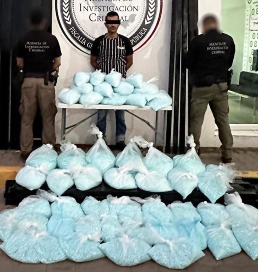 De acuerdo con la investigación, elementos de la Policía Federal Ministerial (PFM), de la Agencia de Investigación Criminal (AIC), derivado de una denuncia anónima, llevaron a cabo la detención de Alfonso “B”, en la Carretera México 15, a la altura del poblado cinco, Ahome, Sinaloa, a quien le aseguraron en el tractocamión que manejaba, dos millones 597 mil 543 pastillas de fentanilo.